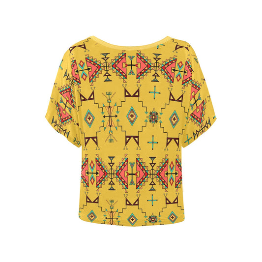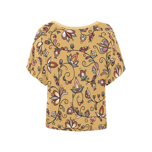 Copper Prairie Petals Yellow Women's Batwing-Sleeved Blouse T shirt