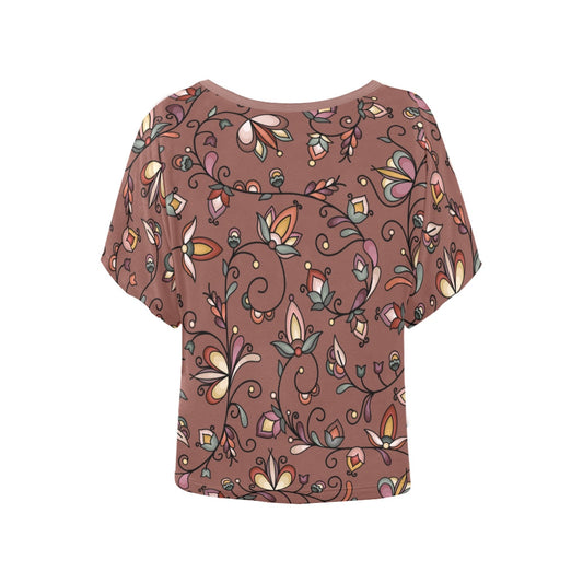 Burnt Sky Petals Brown Women's Batwing-Sleeved Blouse T shirt
