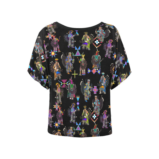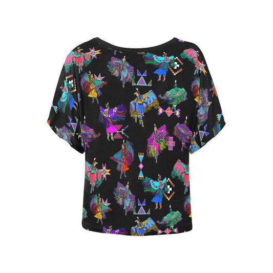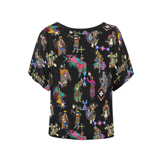 Grand Entry Dancers Black Women's Batwing-Sleeved Blouse T shirt