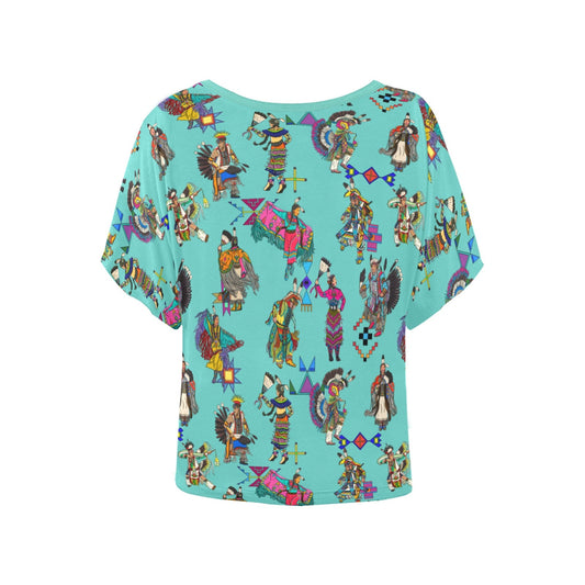 Grand Entry Dancers Eggshell Blue Women's Batwing-Sleeved Blouse T shirt