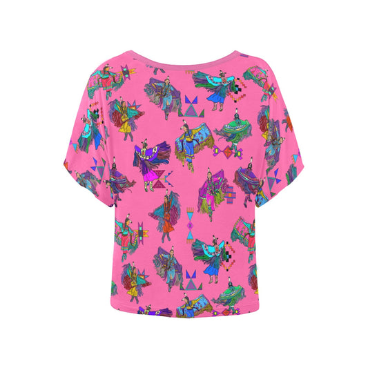 Women's Fancy Dancers Pink Women's Batwing-Sleeved Blouse T shirt