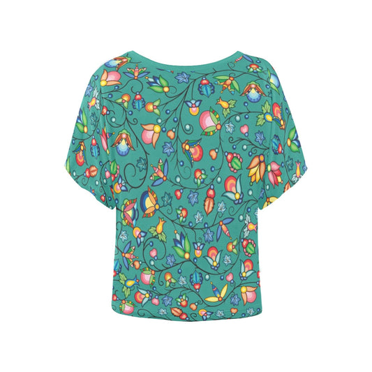 Floral Beadwork Seven Clans Deep Lake Women's Batwing-Sleeved Blouse T shirt