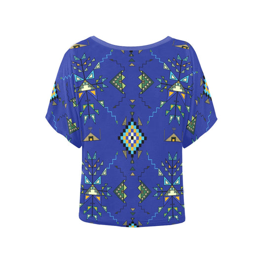 Copper Prairie Petals Blue Women's Batwing-Sleeved Blouse T shirt