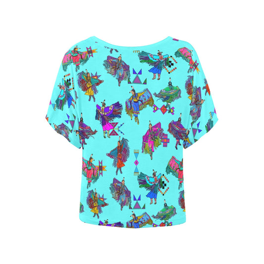 Women's Fancy Dancers Turquoise Women's Batwing-Sleeved Blouse T shirt