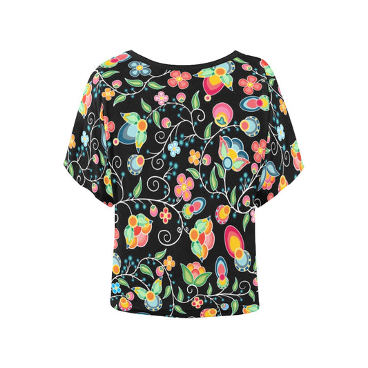 Floral Bounty Black Women's Batwing-Sleeved Blouse T shirt