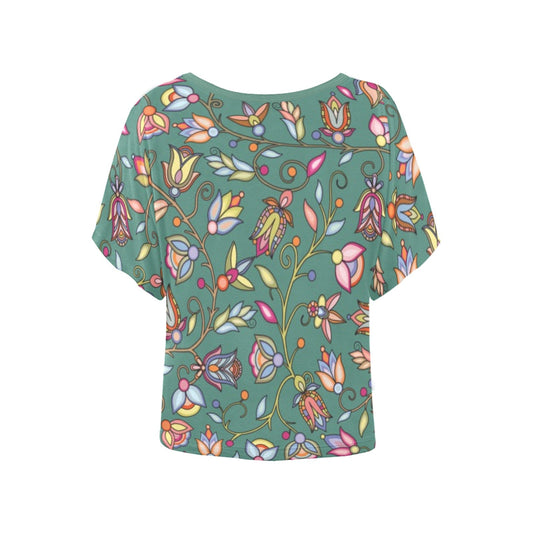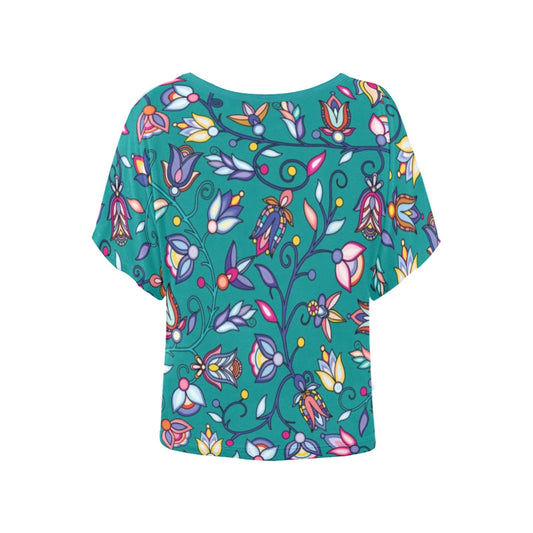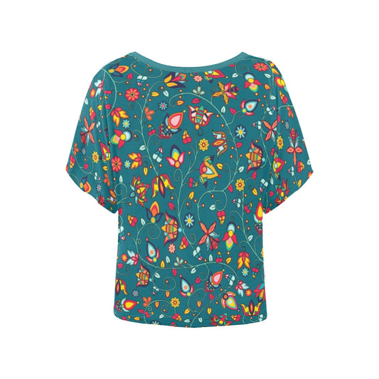 Floral Bounty Teal Women's Batwing-Sleeved Blouse T shirt