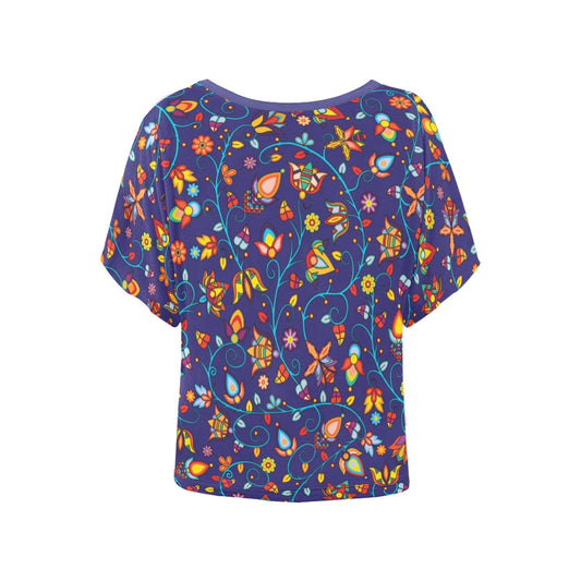 Floral Bounty Blue Women's Batwing-Sleeved Blouse T shirt