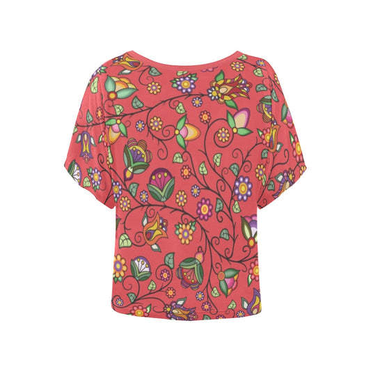Heartbeat Petals Red Women's Batwing-Sleeved Blouse T shirt