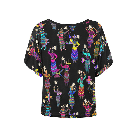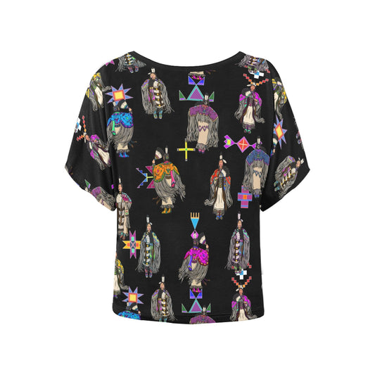 Women's Jingle Dancers Black Women's Batwing-Sleeved Blouse T shirt