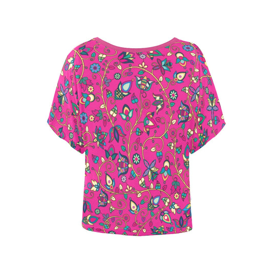 Floral Bounty Magenta Women's Batwing-Sleeved Blouse T shirt