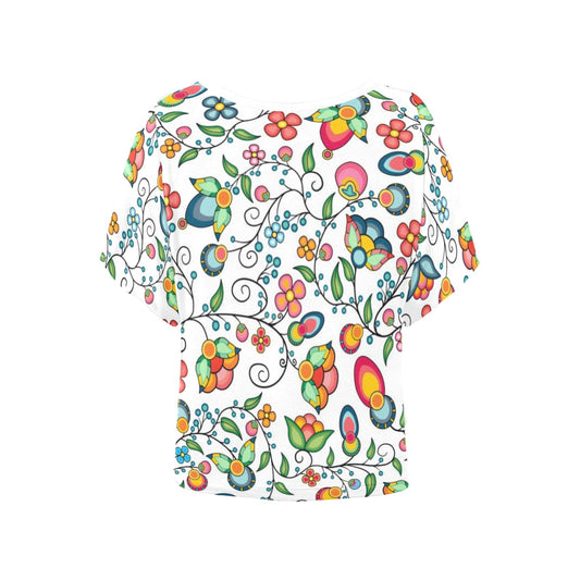 Floral Bounty White Women's Batwing-Sleeved Blouse T shirt