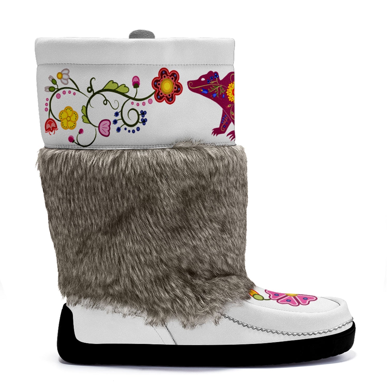 They contain a very soft but warm sherpa lining and leather ties. The rubber sole will give your mukluks the durability to last years, and everyone will be asking where you got them. The maximum calf circumference is 16 inches.