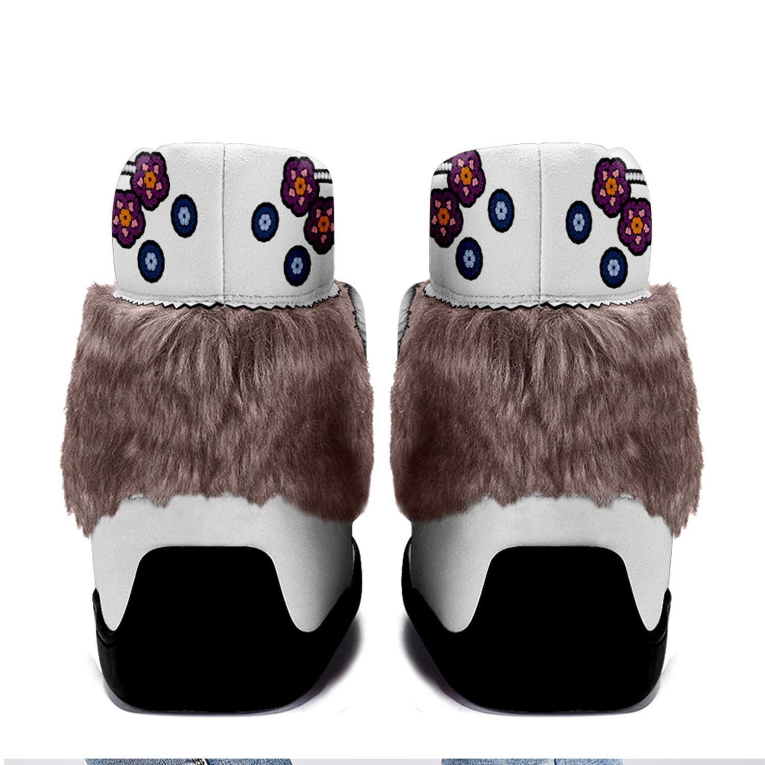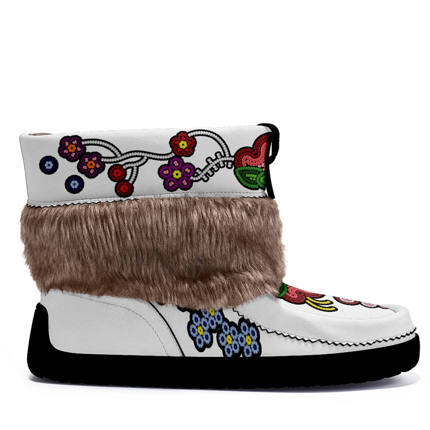 Beaded Gifts White Leather MocLux Short Style with Fur