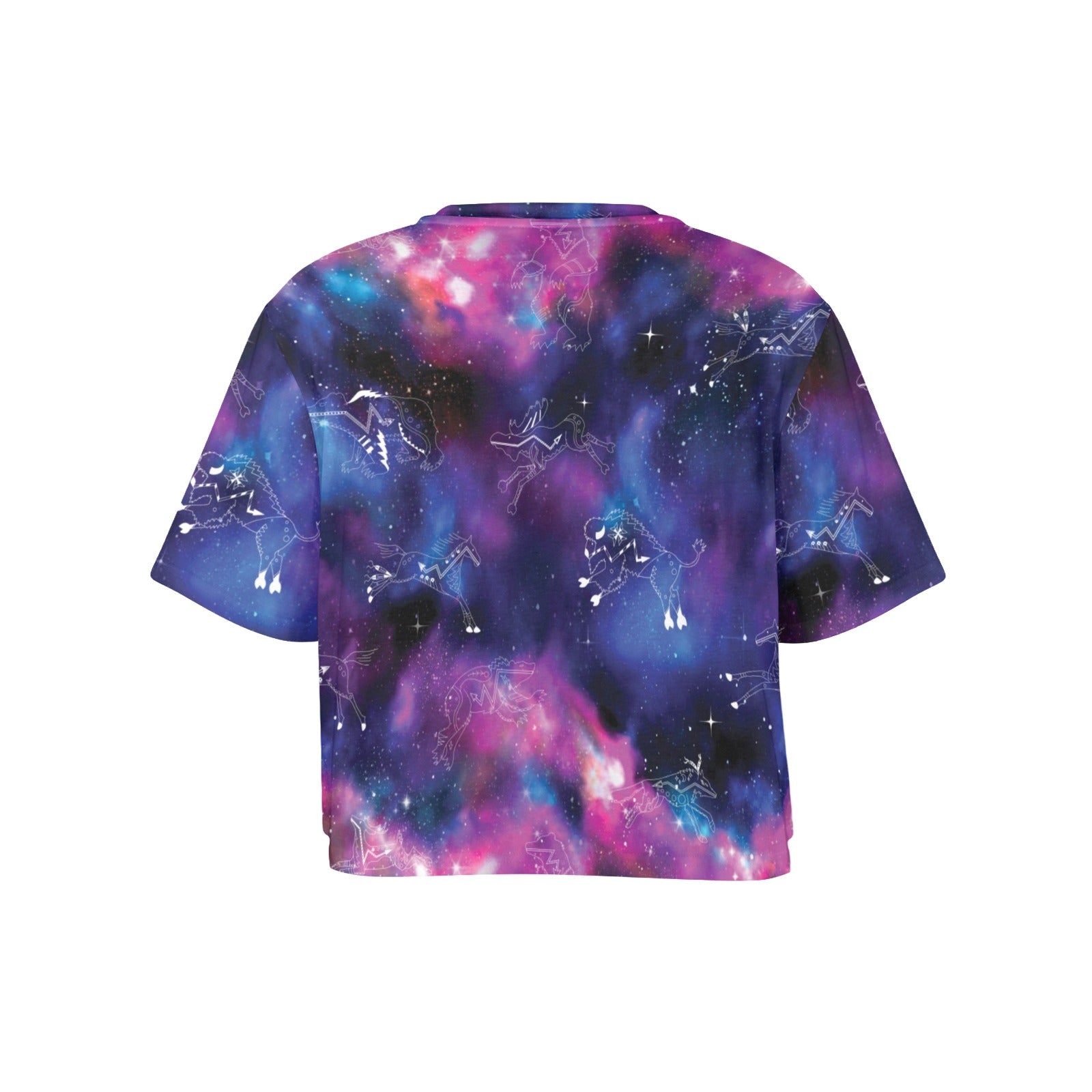 A great option in streetwear, this all over print t-shirt features a cropped silhouette for a relaxed and cool look and looks best when matched with jeans or leggings.