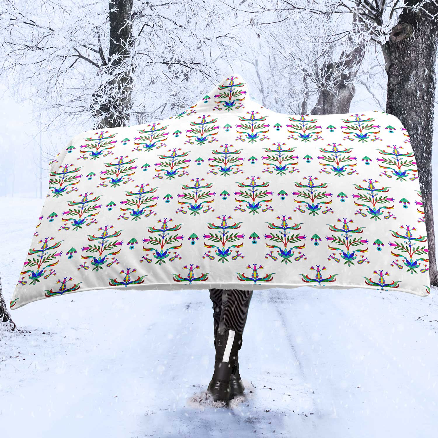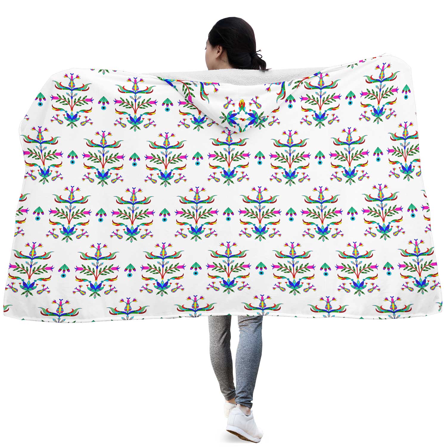 Dakota Damask White Hooded Blanket