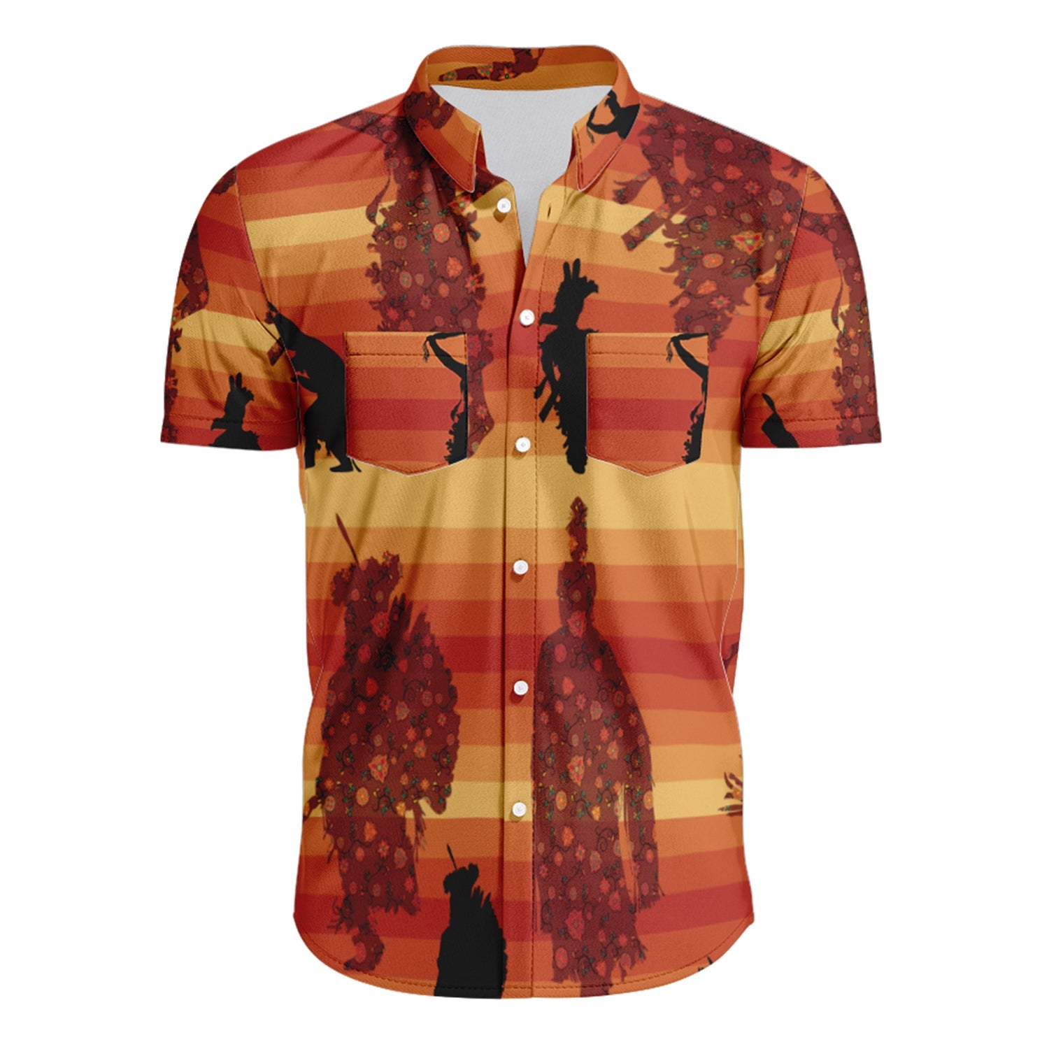 Hawaiian-style shirt with short sleeves that offers a comfortable and relaxed fit
