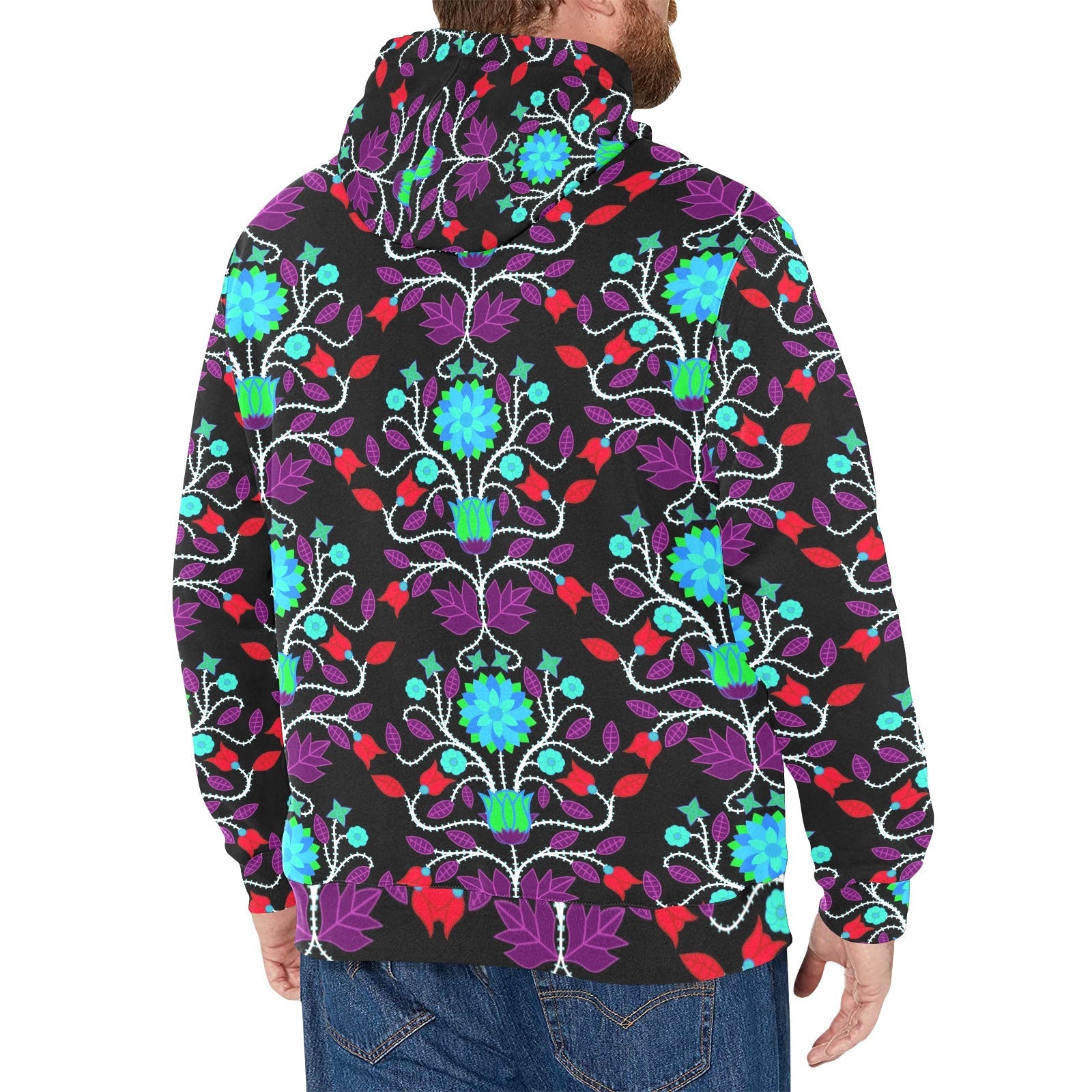 Floral Beadwork Four Clans Winter Men's Long Sleeve Fleece Hoodie