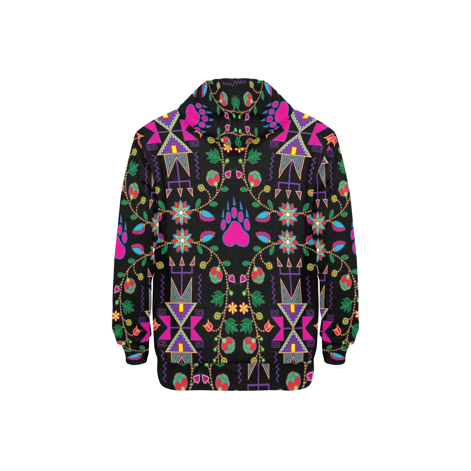 Geometric Floral Fall Black Men's Long Sleeve Fleece Hoodie