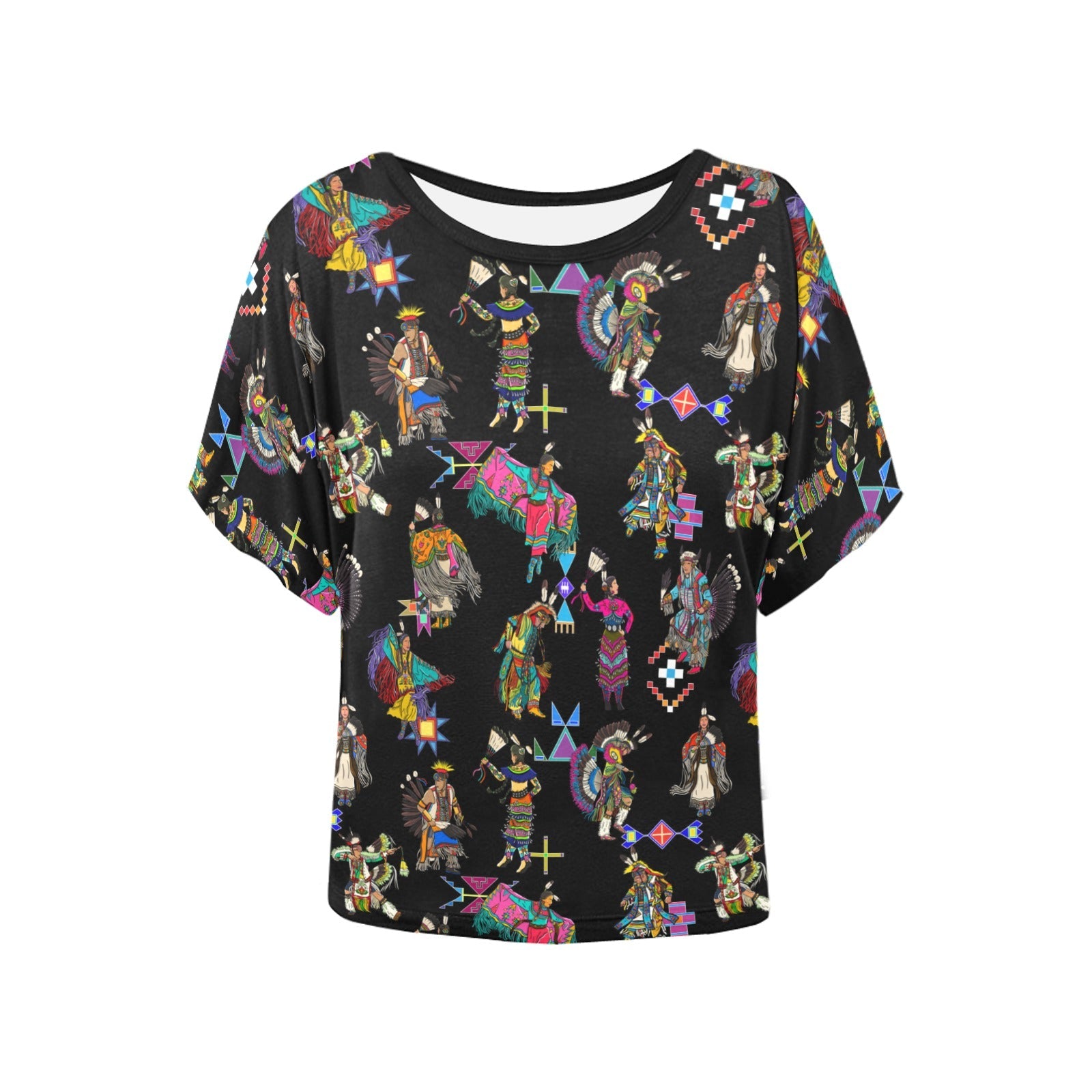 Grand Entry Dancers Black Women's Batwing-Sleeved Blouse T shirt