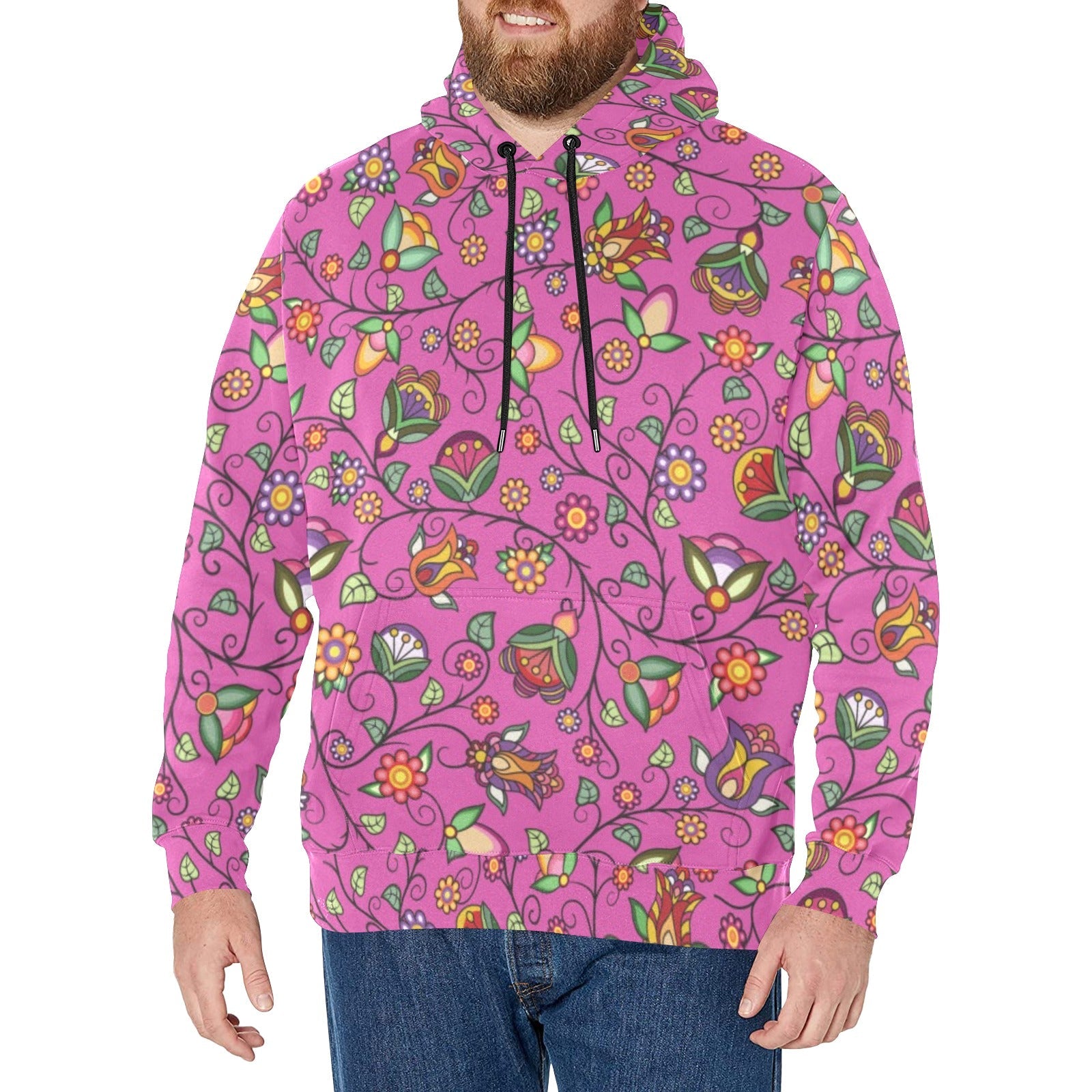 Heartbeat Petals Pink Men's Long Sleeve Fleece Hoodie