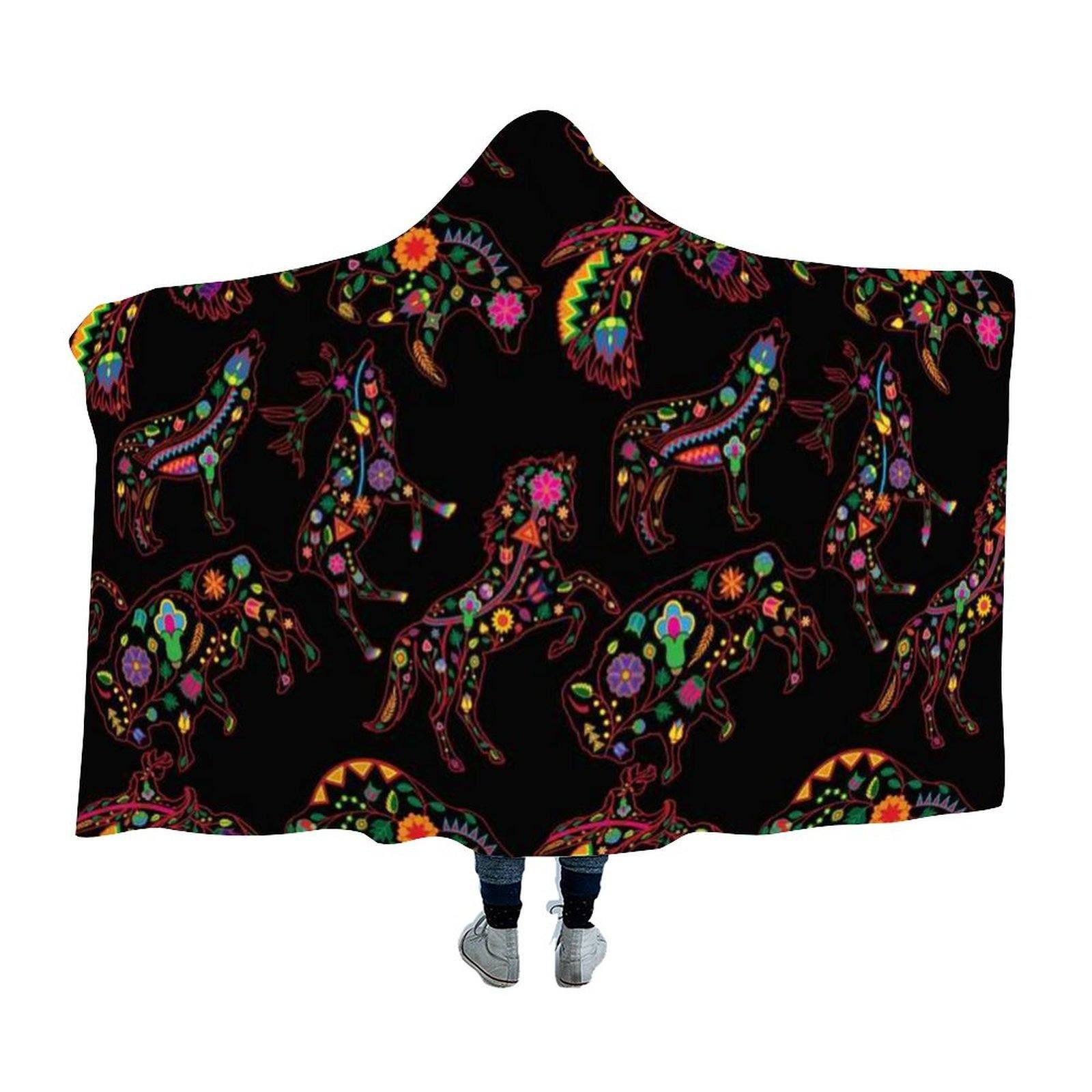 Neon Floral Animals Hooded Blanket