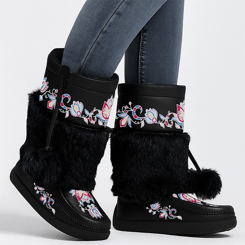 Northern Ember Real Black Leather MocLux Calf with Fur