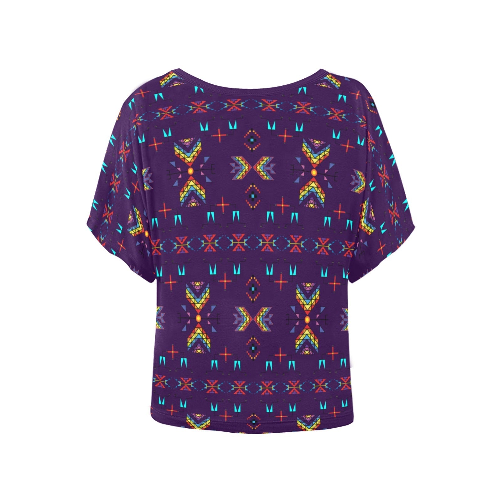 Rainy Chief Rainbow Dark Purple Women's Batwing-Sleeved Blouse T shirt