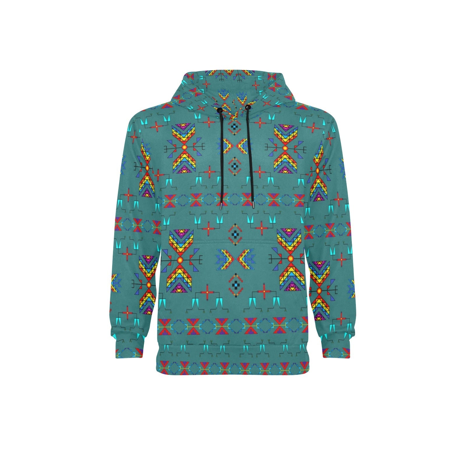 Rainy Chief Rainbow Teal Sky Men's Long Sleeve Fleece Hoodie