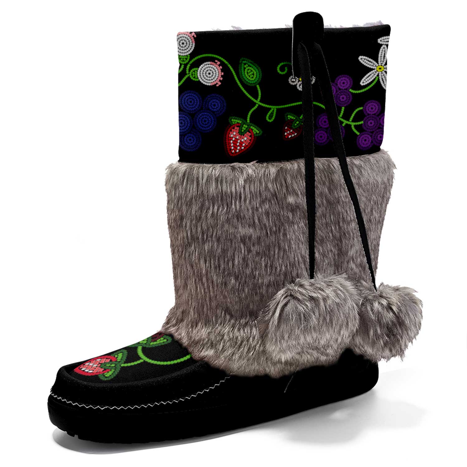 They contain a very soft but warm sherpa lining and leather ties. The rubber sole will give your mukluks the durability to last years, and everyone will be asking where you got them. The maximum calf circumference is 16 inches.