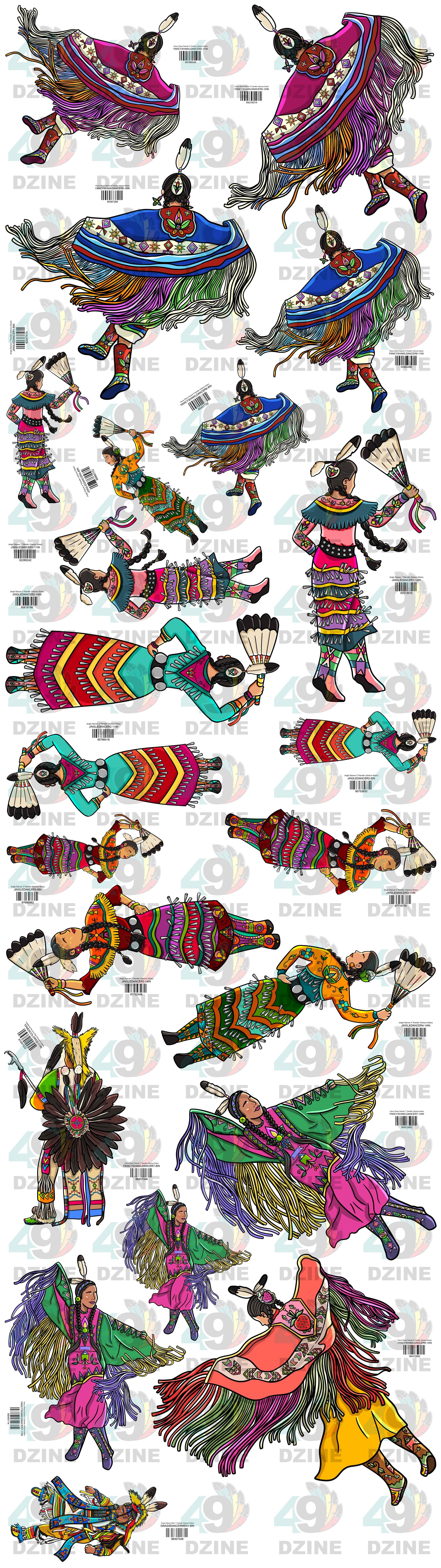 These transfer applique are just like screen prints. You can iron them or heat press them to fabric items. They'll work great on regalia, ribbon skirts, cloth bags, most fabrics, some leathers. If you follow the care instructions, they should last for more than 50 washes. We have created videos and instruction sheets to make them as easy as possible to apply. We also include test transfers you can practice on until you get comfortable applying them. We recommend using teflon sheets when pressing, but you can also use parchment paper. They will save you so much time when making regalia, or dressing up your ribbon skirt. They work great in place of embroidery or traditional silk-screening.
