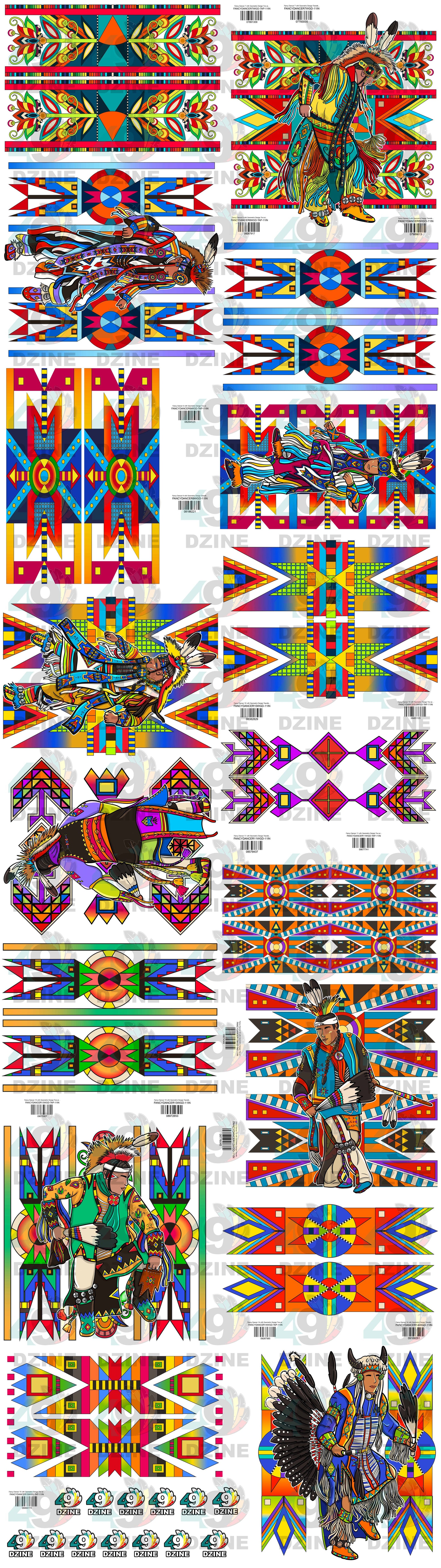 These transfer applique are just like screen prints. You can iron them or heat press them to fabric items. They'll work great on regalia, ribbon skirts, cloth bags, most fabrics, some leathers. If you follow the care instructions, they should last for more than 50 washes. We have created videos and instruction sheets to make them as easy as possible to apply. We also include test transfers you can practice on until you get comfortable applying them. We recommend using teflon sheets when pressing, but you can also use parchment paper. They will save you so much time when making regalia, or dressing up your ribbon skirt. They work great in place of embroidery or traditional silk-screening.