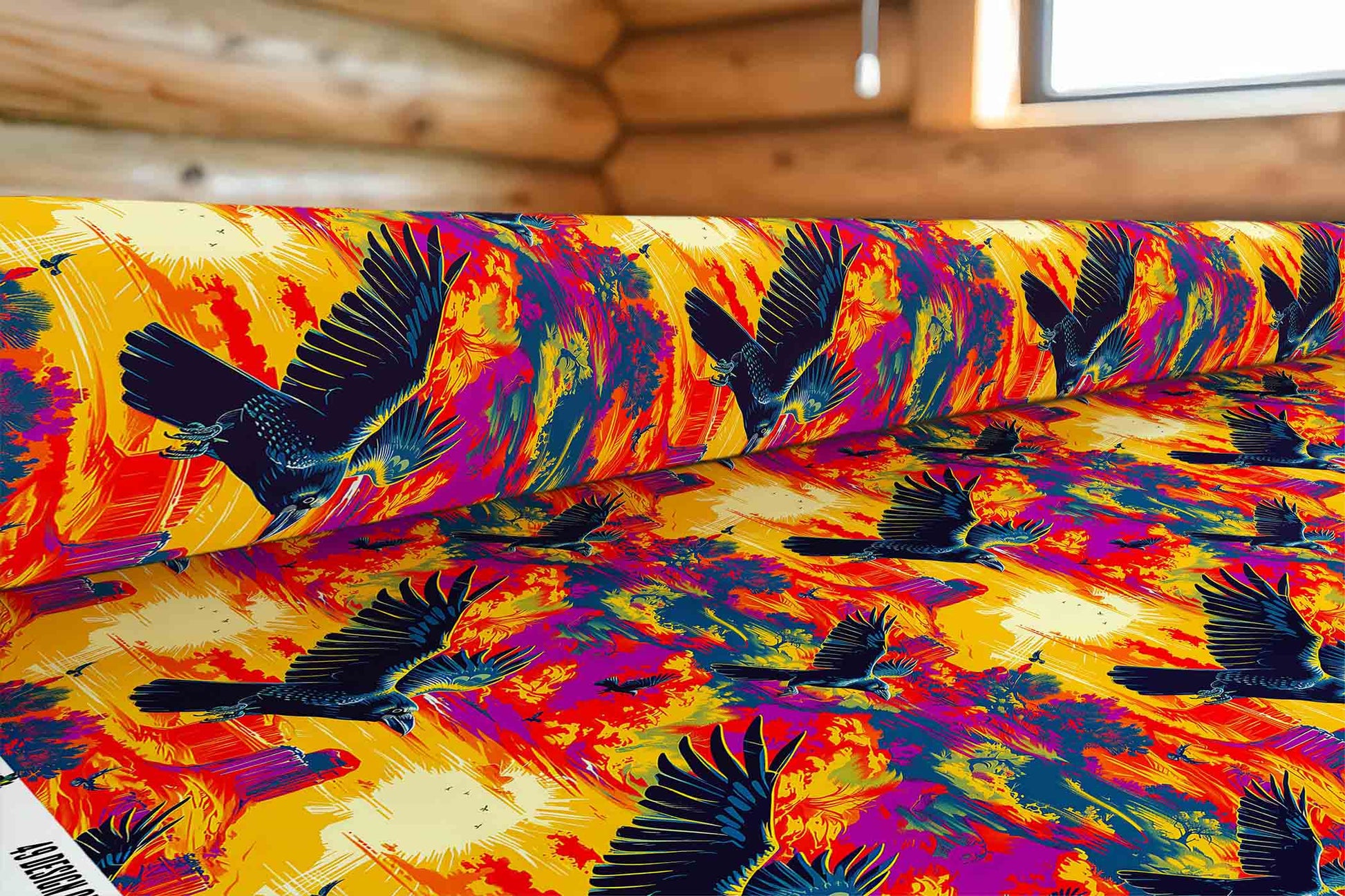 Crow Spreads His Wings Fabric