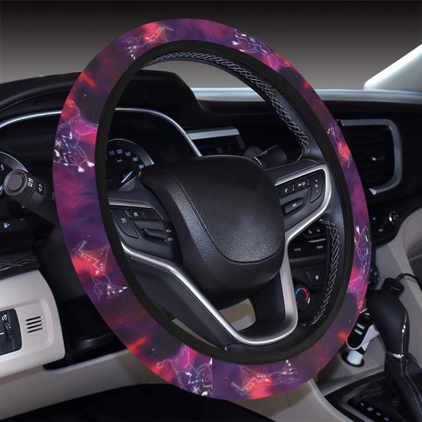 Animal Ancestors 3 Blue Pink Swirl Steering Wheel Cover with Elastic Edge