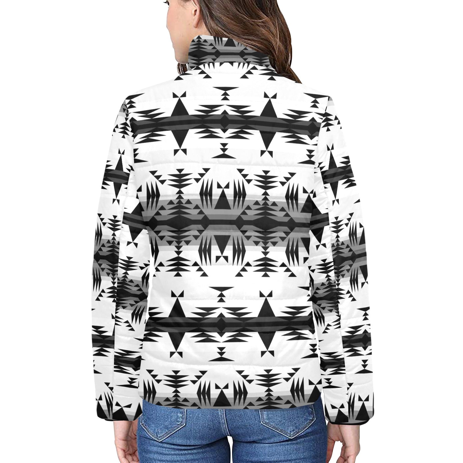 Between the Mountains White and Black Women's Stand Collar Padded Jacket