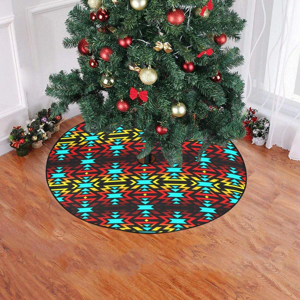 Black Fire and Turquoise Christmas Tree Skirt 47" x 47"