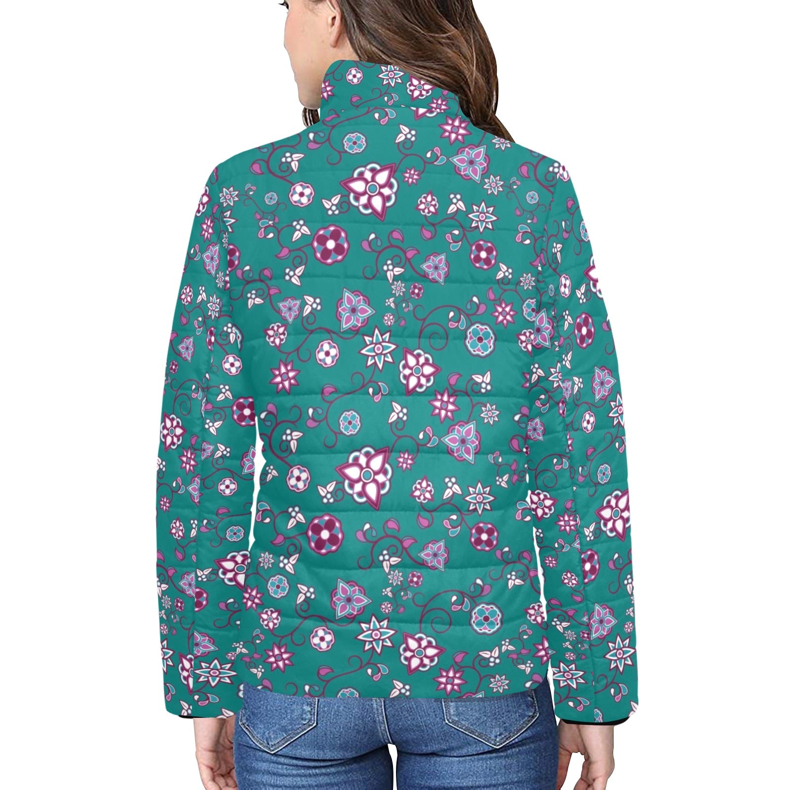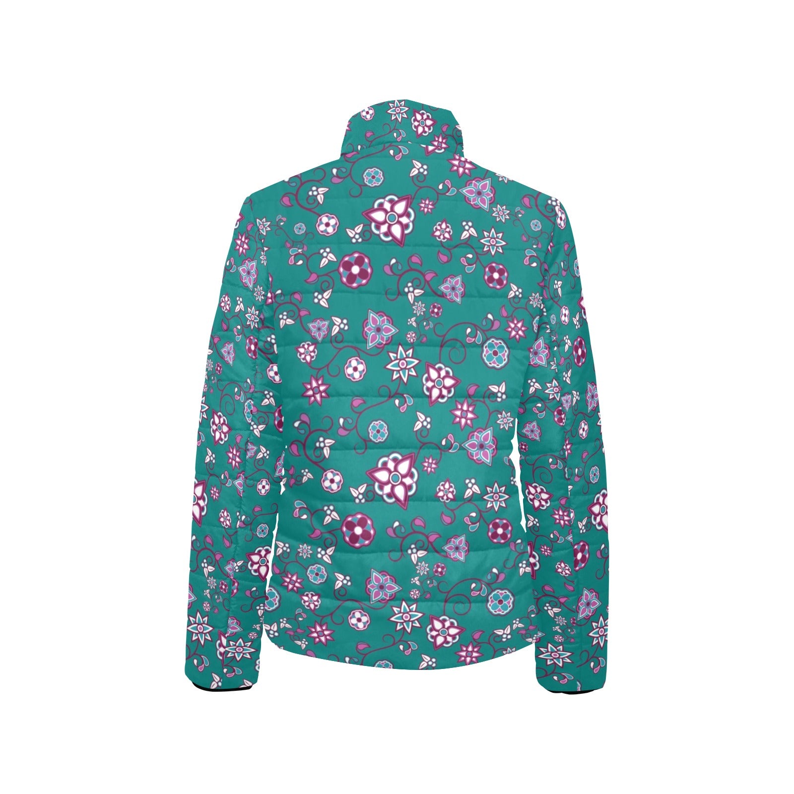 Burgundy Bloom Women's Stand Collar Padded Jacket