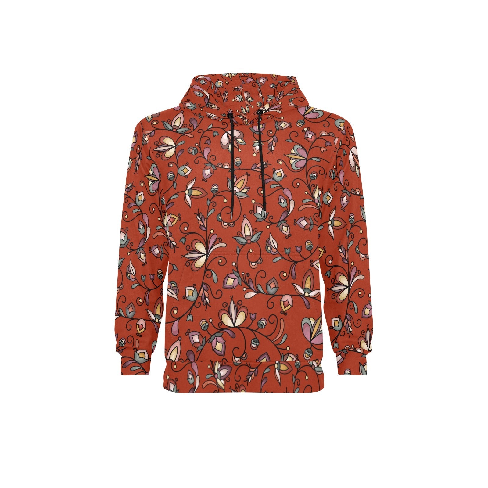 Burnt Sky Petals Red Men's Long Sleeve Fleece Hoodie