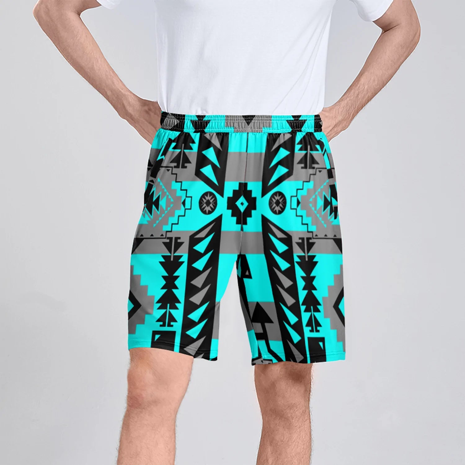 These Athletic Polyester Stretch Shorts with Pockets Keep You Comfortable at the Gym or Powwow.