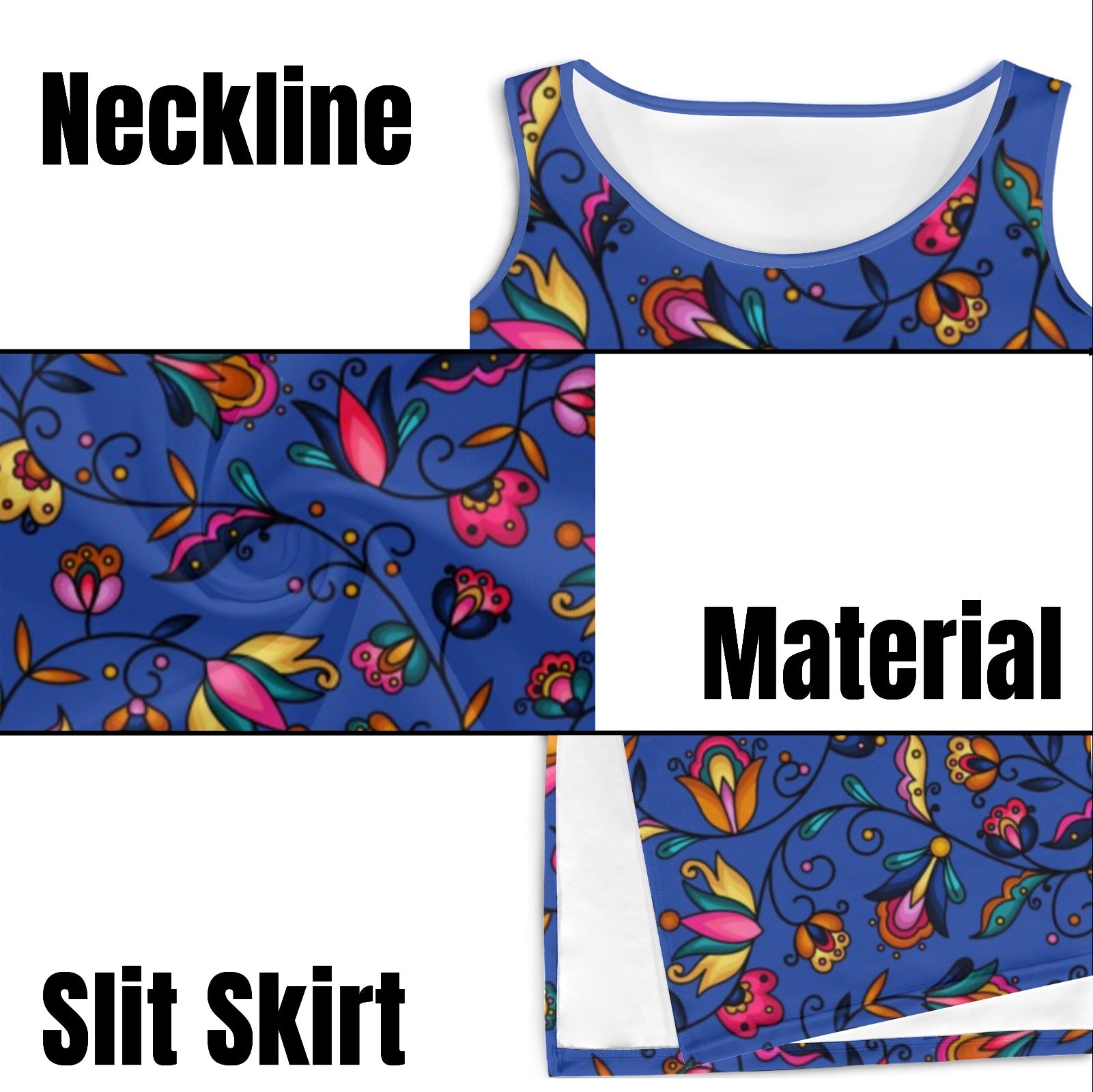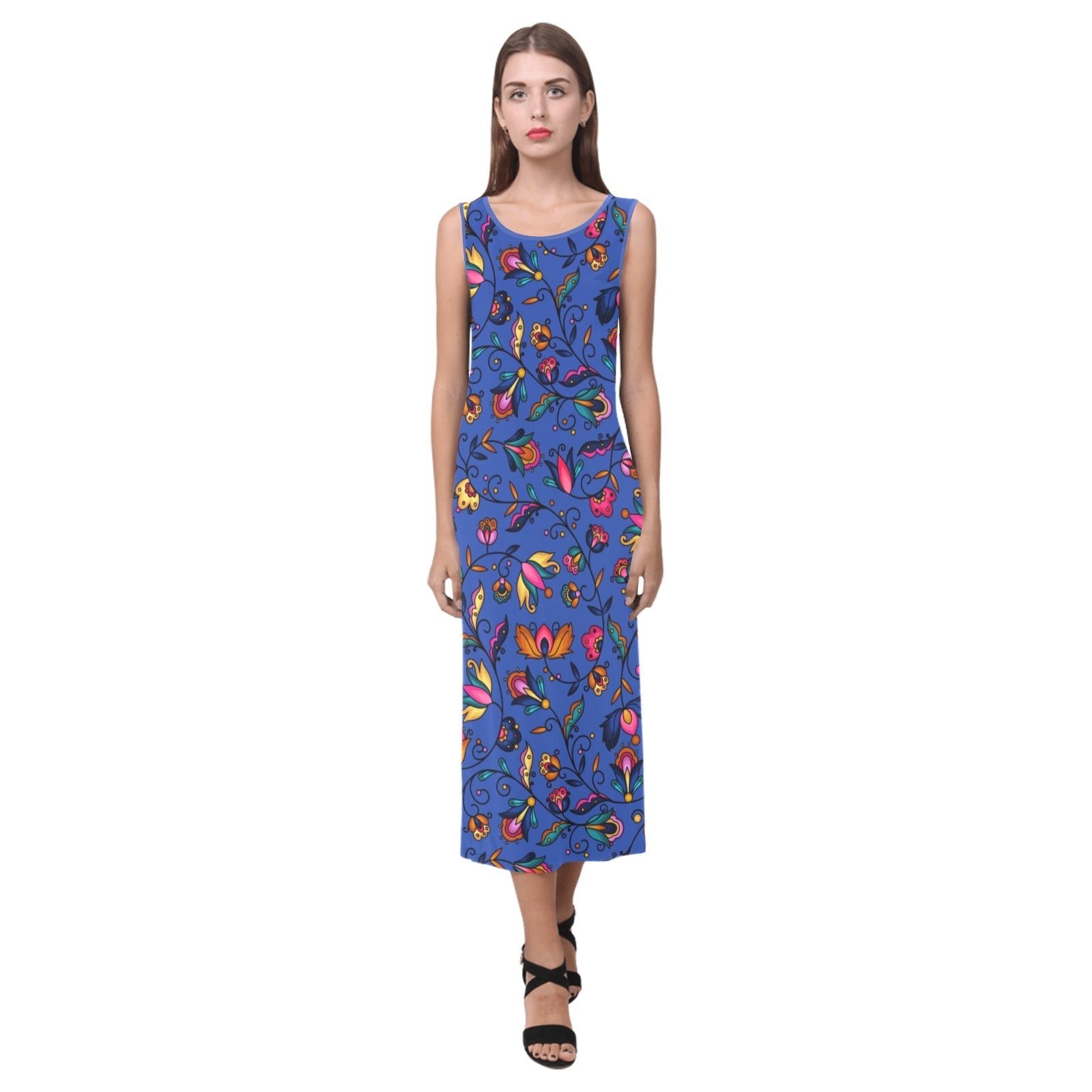 Copper Prairie Petals Blue Phaedra Sleeveless Open Fork Long Dress