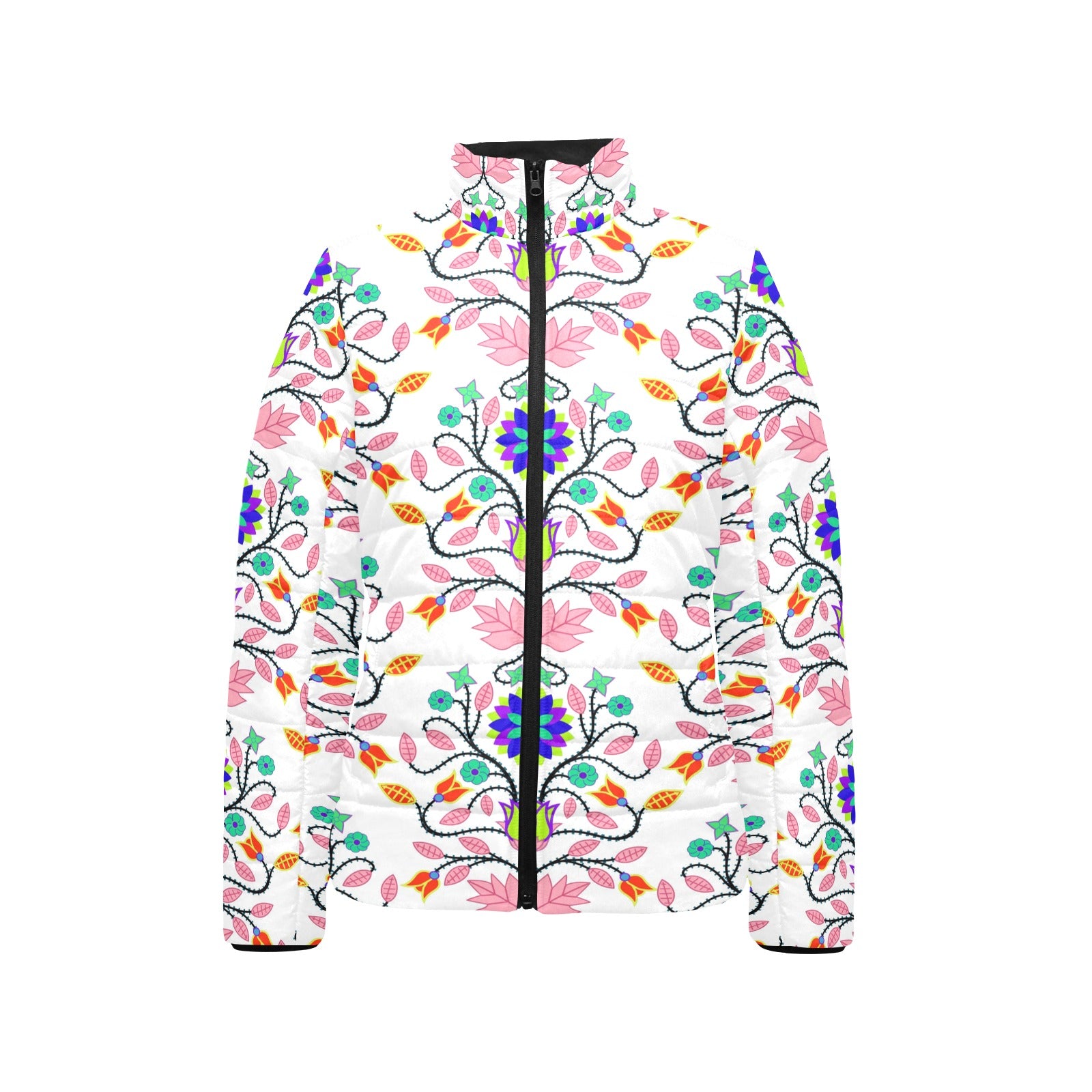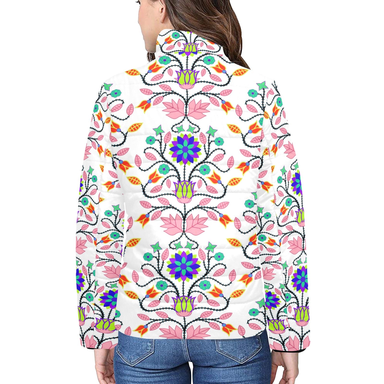 Floral Beadwork Four Clans White Women's Stand Collar Padded Jacket