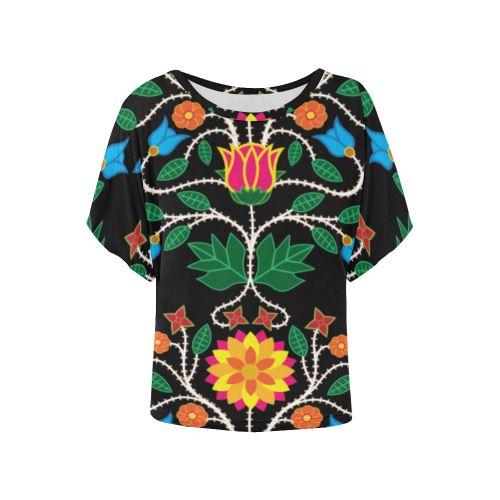 Floral Beadwork Four Clans Women's Batwing-Sleeved Blouse T shirt