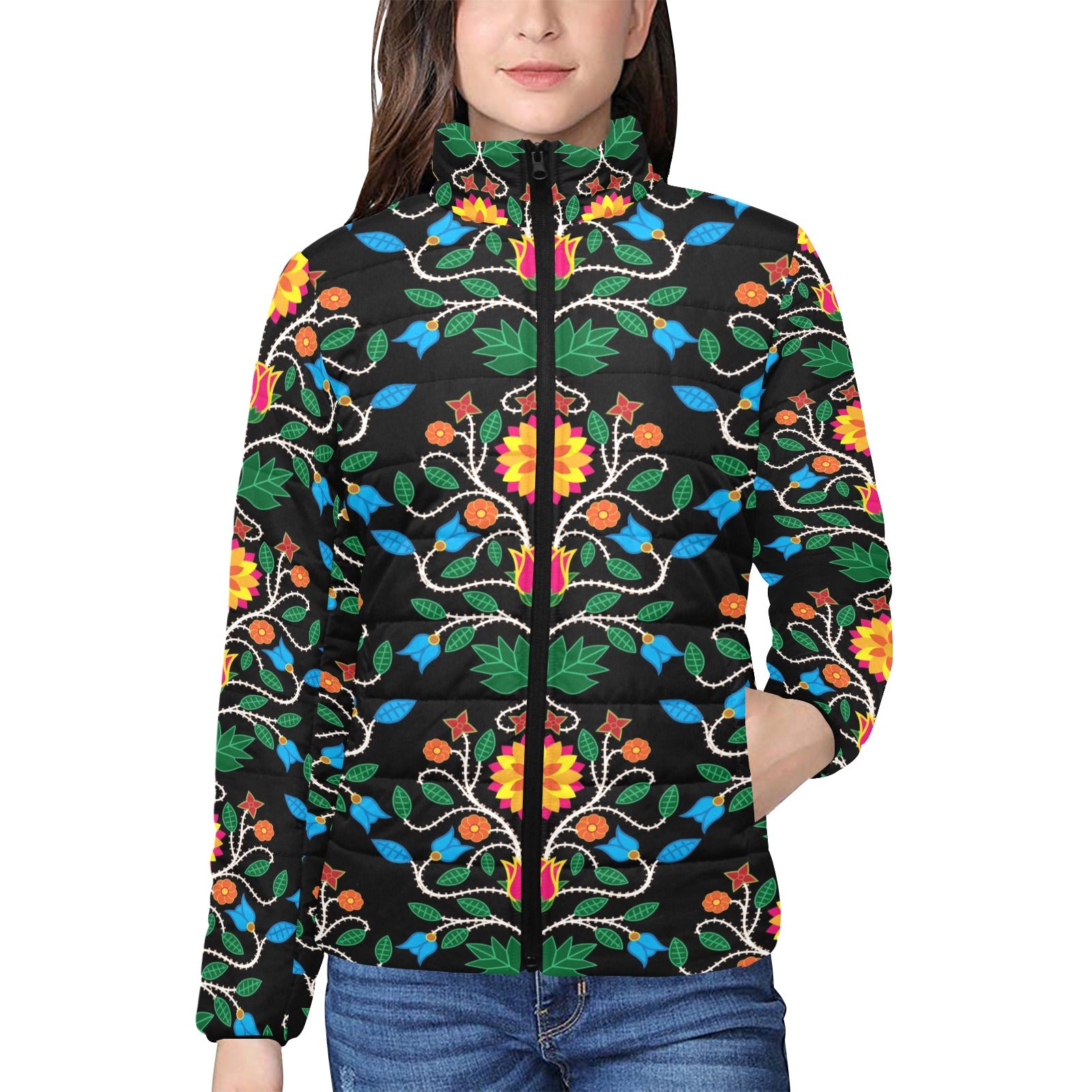 Floral Beadwork Four Clans Women's Stand Collar Padded Jacket