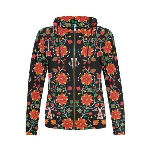 Floral Beadwork Six Bands Full Zip Hoodie for Women