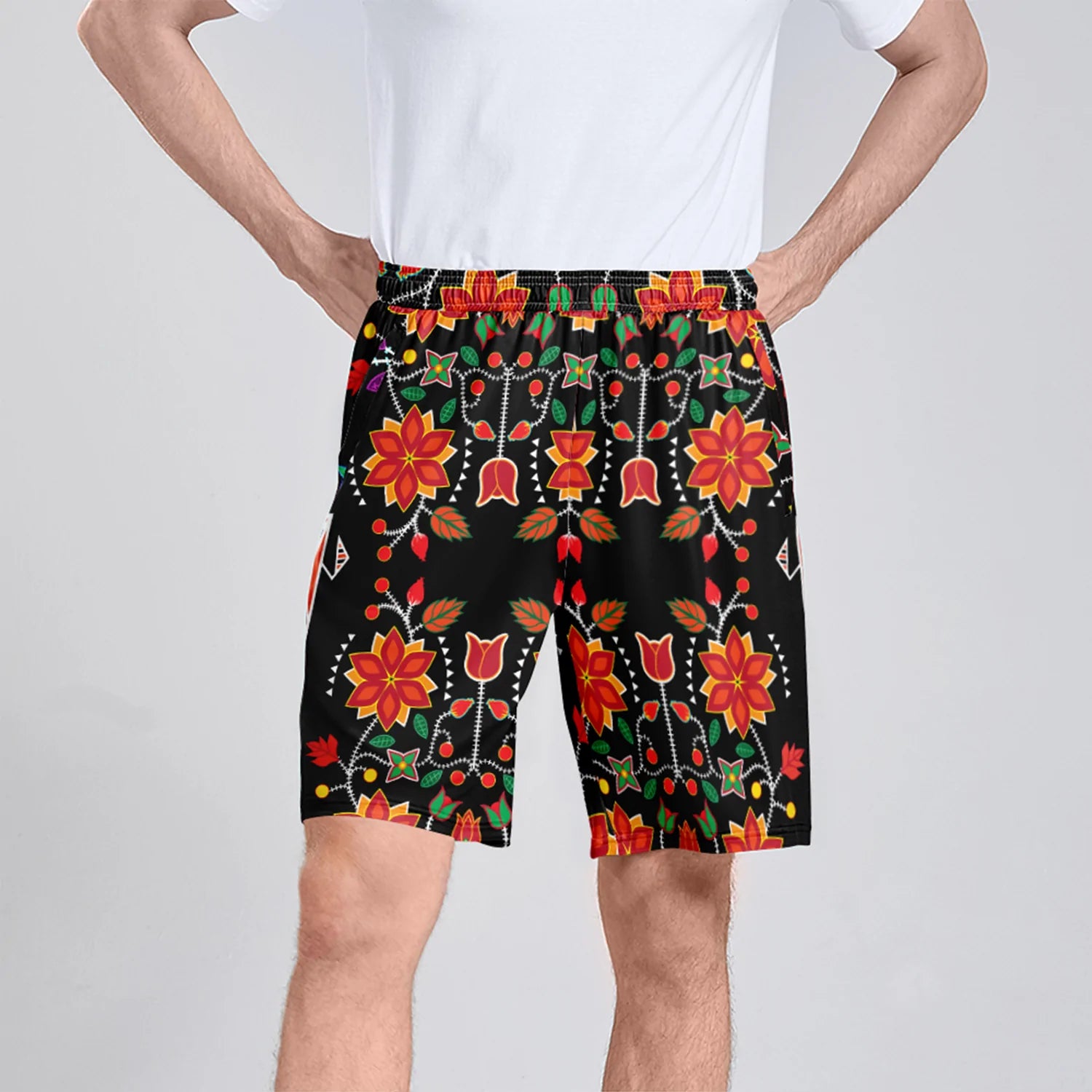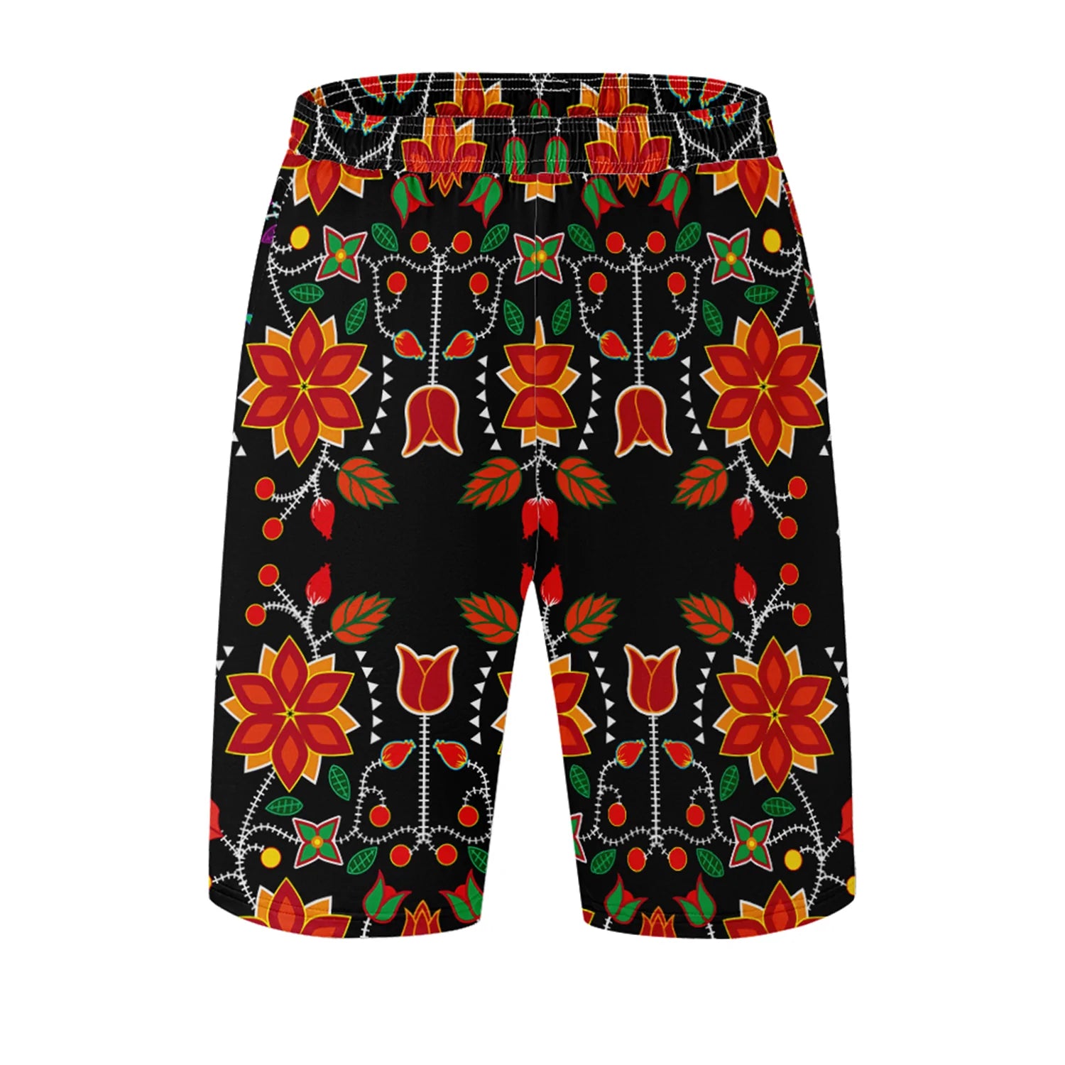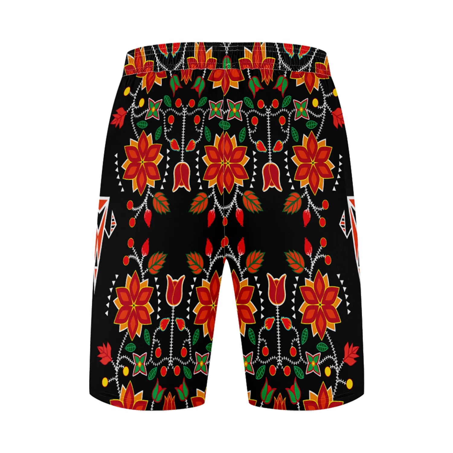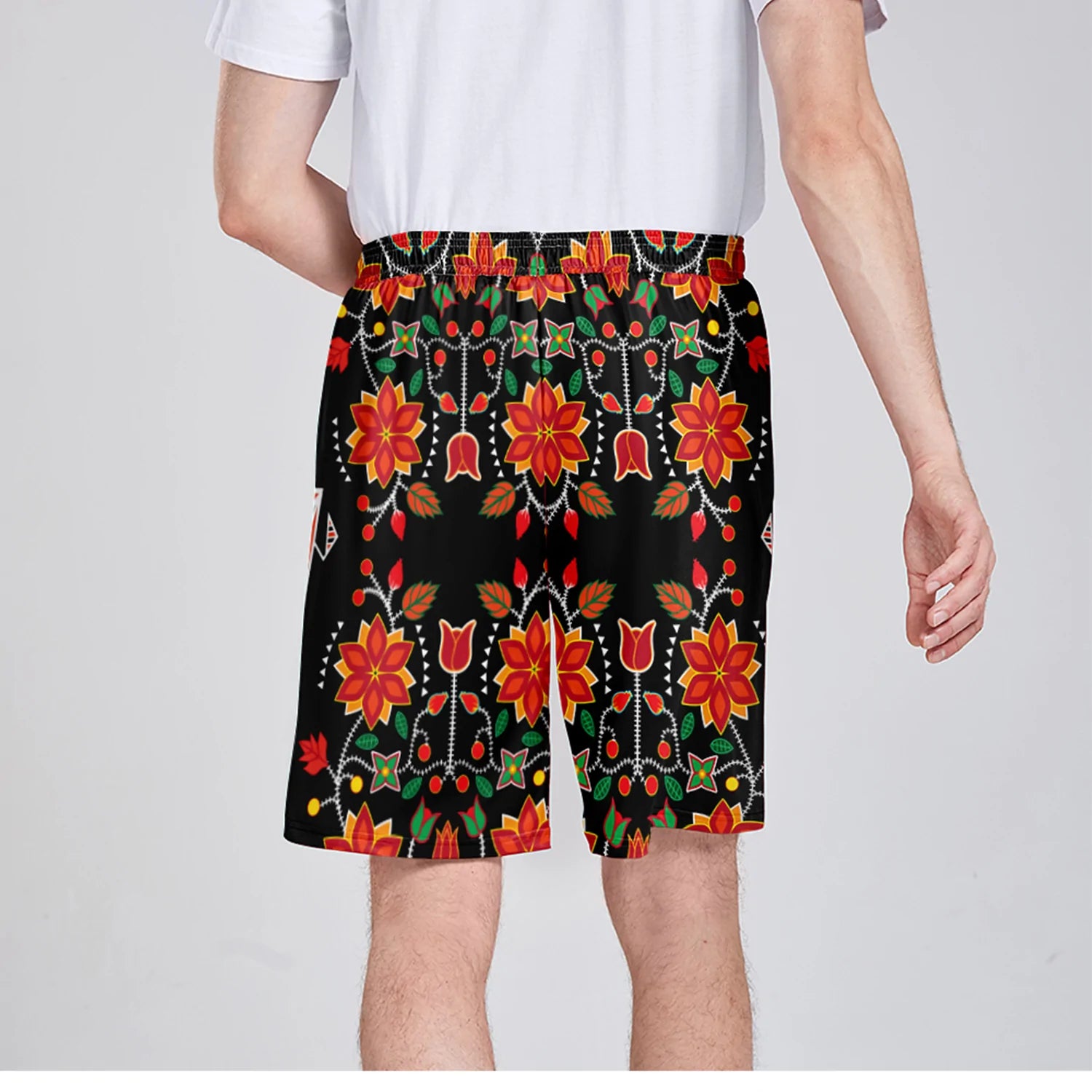 Floral Beadwork Six Bands Athletic Shorts with Pockets