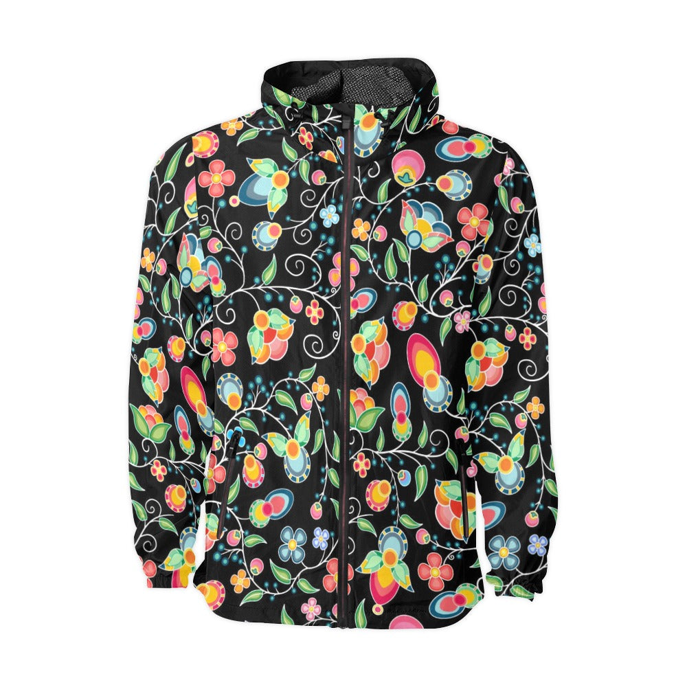 This all over print windbreaker with drawstring hood, elastic cuffs and bottom hem
