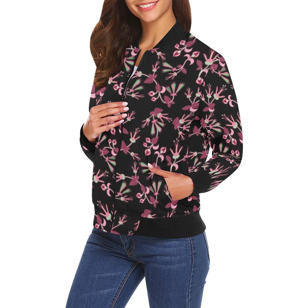 Floral Green Black Bomber Jacket for Women