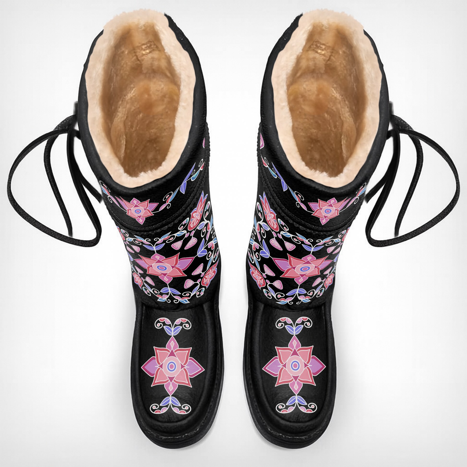 They contain a very soft but warm sherpa lining and leather ties. The rubber sole will give your mukluks the durability to last years, and everyone will be asking where you got them. The maximum calf circumference is 16 inches.