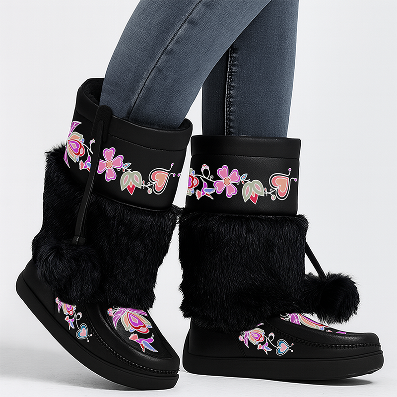 Frosted Leaf Spirit Real Black Leather MocLux Calf with Fur