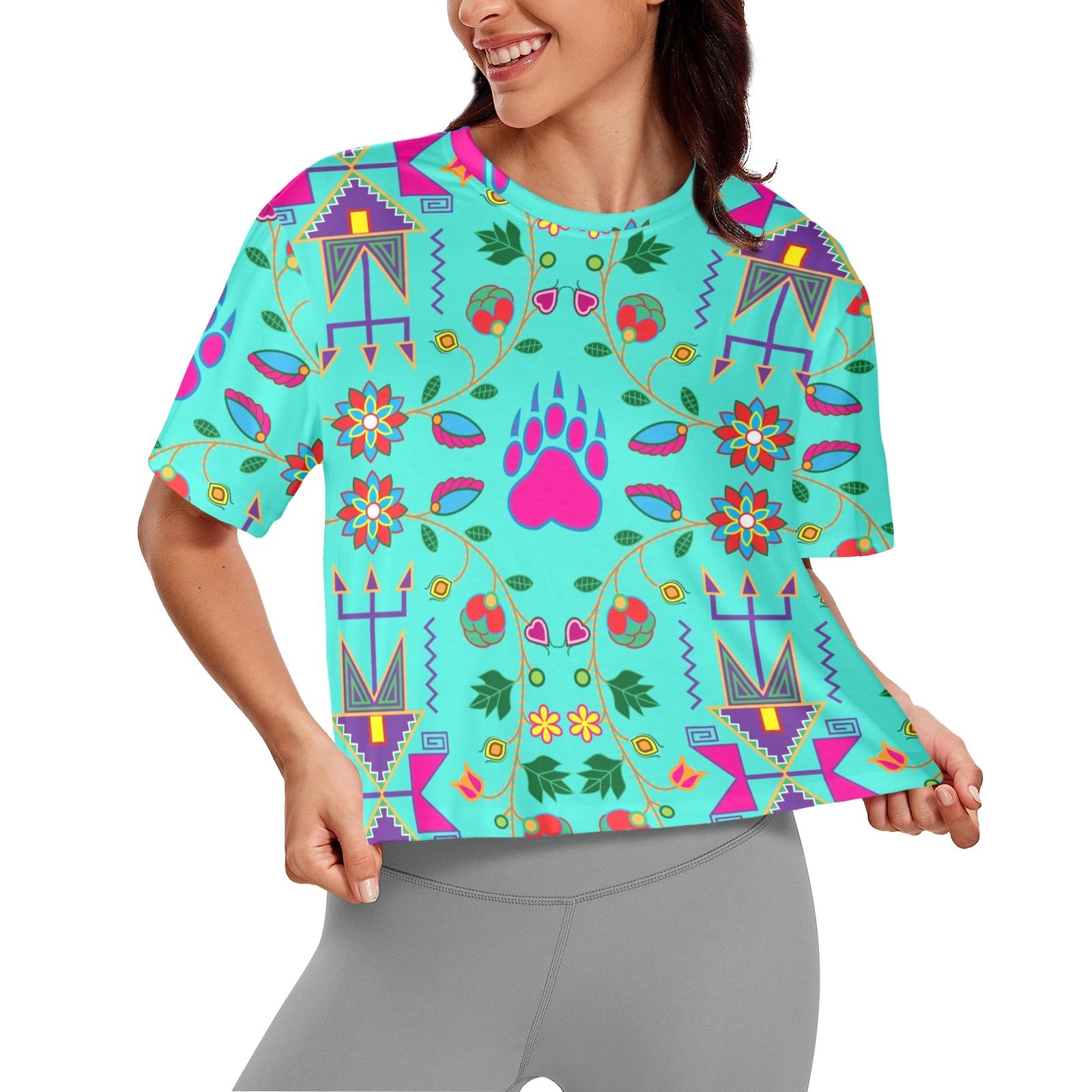A great option in streetwear, this all over print t-shirt features a cropped silhouette for a relaxed and cool look and looks best when matched with jeans or leggings.