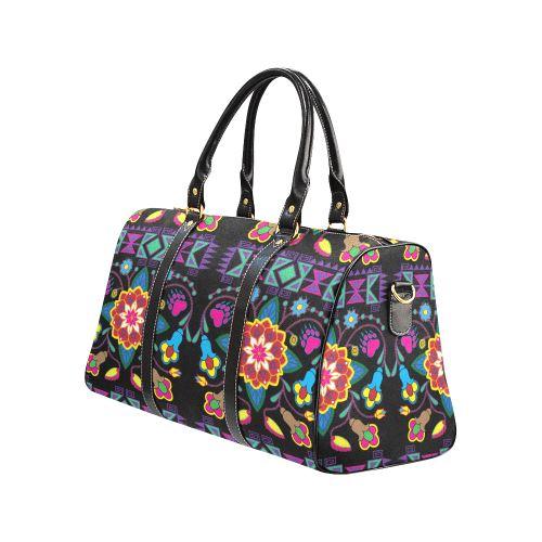Geometric Floral Winter-Black New Waterproof Travel Bag/Large
